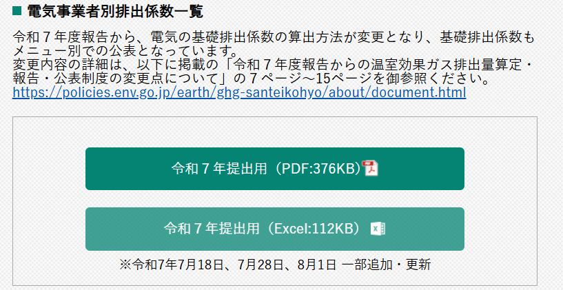 下記サイトの「算定方法・排出係数一覧」のページより、算定の対象となる年度の係数をご確認ください。