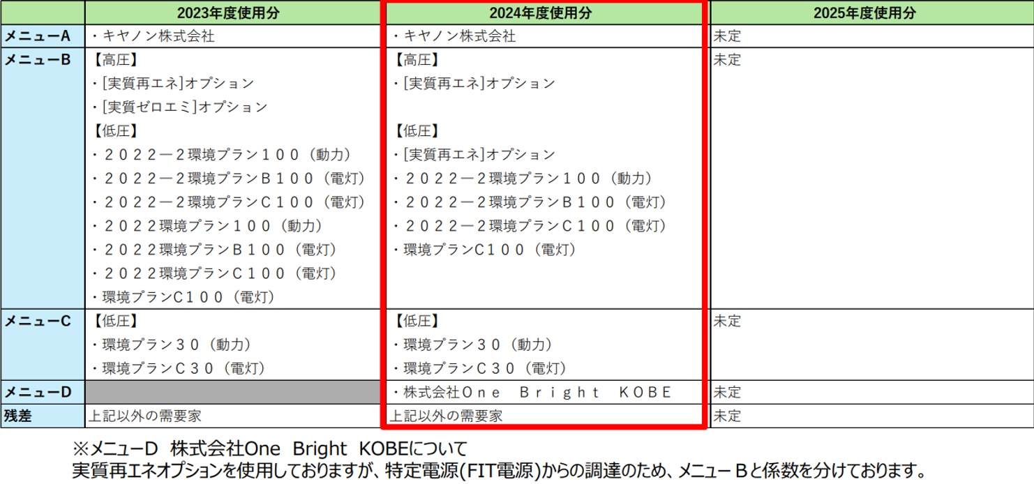 ※当社の調整後係数が複数記載されている場合、再エネオプション・メニュー契約ではないお客様は、下記図の「メニューE(残差)」に記載されている係数を使用。