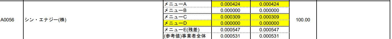 ※当社の調整後係数が複数記載されている場合、再エネオプション・メニュー契約ではないお客様は、下記図の「メニューE(残差)」に記載されている係数を使用。